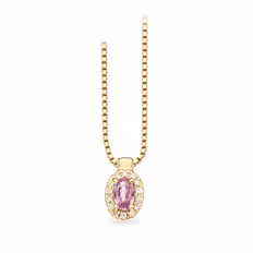 Halskæde med vedhæng, Materiale: Guld, Stenfarve: Rosa