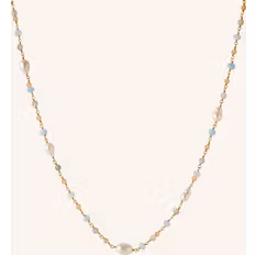 Halskæde med vedhæng, Materiale: Guldbelagt, Genanvendt materiale, Sølv, Sten: Perle, Topaser, Stenfarve: Blå