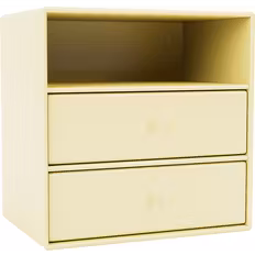 Materiale: MDF, Farve: Gul, Opbevaringsmuligheder: Udtræksskuffer, Hylder, Højde: 24cm, Bredde: 35.4cm, Dybde: 30cm