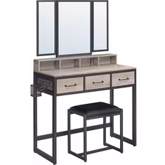Materiale: Læder, Stål, Glas, Spånplade, Farve: Grå, Sort, Opbevaringsmuligheder: Dør, Udtræksskuffer, Hylder, Højde: 141cm, Bredde: 90cm, Dybde: 40cm