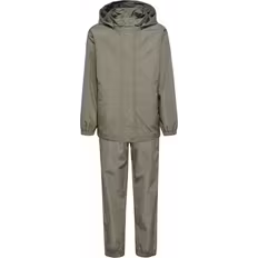 Regnsæt, Materiale Polyester, Farve Grøn, Egenskaber: Vandtæt, Tapet søm, Uden flourstoffer, Elastik manchet, Reflekser, PFC-fri vandafvisning, Aftagelig hætte