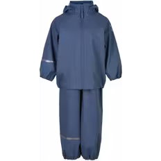 Regnsæt, Materiale Polyuretan, Polyester, Farve Blå, Ensfarvet, Egenskaber: Åndbart materiale, Aftagelig hætte, Reflekser, Vandtæt, Fodstrop, Elastik manchet