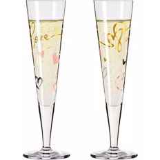 Med fod, Krystalglas, Sort, Guld, Transparent, Rød
