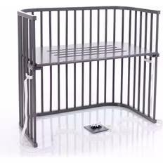 Bedside crib, Aftagelig side, Højdejusterbare bund, Grå, Materiale: Træ, Bøg, Uden skadelig kemi, Højde 79 cm, Længde 96 cm, Bredde 54 cm
