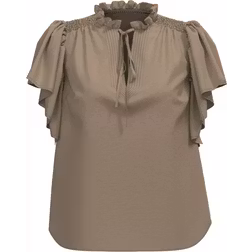 Co'Couture, Bluser og skjorter , Dame, Beige, M, Feminin Flæsetop i valnød