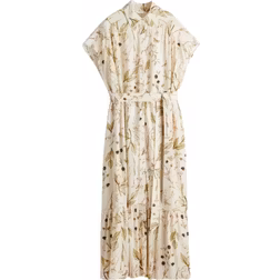 Kjole, Midikjole, Skjortekjole, Blomstret, Materiale: Viskose