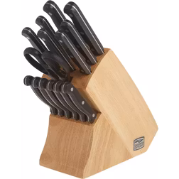 Knivsæt med Skrællekniv, Universalkniv, Santokukniv, Steakkniv, Brødkniv,Opvask i hånden,Olivenslebet, Bølgeskær, Knivsbladmateriale: Rustfrit stål, Skaftmateriale: Stål