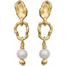 Lang ørering, Perleørering, Materiale: Sølv, Guldbelagt, 18k, Sten: Perle, Stenfarve: Hvid