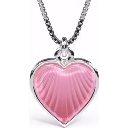 Halskæde med vedhæng, Materiale: Emalje, Rhodiumbelagt, Sølv, Stenfarve: Rosa