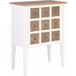 Materiale: Træ, Farve: Brun, Hvid, Opbevaringsmuligheder: Udtræksskuffer, Dør, Højde: 80cm, Bredde: 54cm, Dybde: 30cm, Antal skuffer/rum: 9
