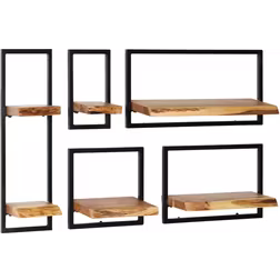 Væghyldesæt 5 dele massivt akacietræ og stål