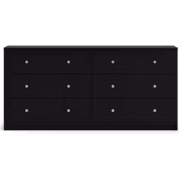 Kommode, Materiale: Spånplade, Farve: Sort, Opbevaringsmuligheder: Udtræksskuffer, Højde: 68.3cm, Bredde: 143.1cm, Dybde: 31.7cm, Antal skuffer/rum: 6