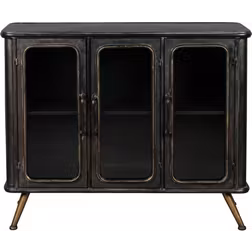 Skænk Dutchbone Denza 80x100x37 cm kulsort pulverlakeret jern med glasdøre og guldfarvede ben