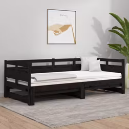Daybed med udtræk 2x(80x200) cm massivt fyrretræ sort
