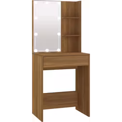 vidaXL makeupbord med LED-lys 60x40x140 cm brun egetræsfarve