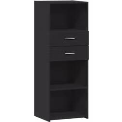 Materiale: Træ, Farve: Sort, Opbevaringsmuligheder: Hylder, Udtræksskuffer, Højde: 124cm, Bredde: 45cm, Dybde: 42.5cm, Antal skuffer/rum: 2
