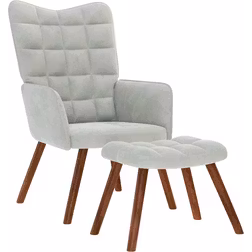 lænestol med fodskammel fløjl lysegrå