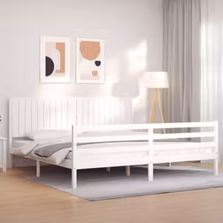 Sengeramme med sengegavl 200x200 cm massivt træ hvid