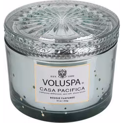 Materiale: Kokosvoks, Glas, Brændetid: 45 Brændetid, Farve: Blå, Transparent, Sølv, Hvid, Egenskaber: Med låg