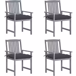 Havestole med hynder 4 stk. massivt akacietræ grå