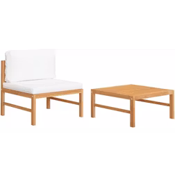 Loungesæt til haven 2 dele med cremefarvede hynder teaktræ