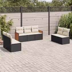 vidaXL sofasæt til haven 7 dele med hynder polyrattan sort