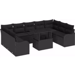 vidaXL Havesofa Sæt med pude med pude 10 pcs Sort Poly Rattan