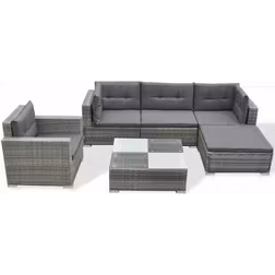 vidaXL haveloungesæt 6 dele med hynder polyrattan grå