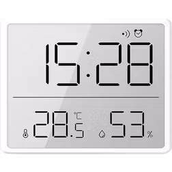 Digitalt Barometer med ur til væggen - Sølv