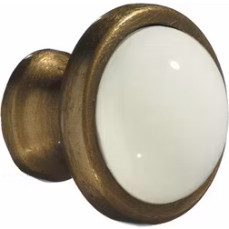 Knop, antik messingfinish/hvid keramik, 38 mm