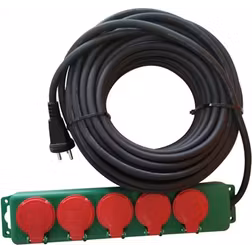 Kabelsæt 3g1,5mm2 med jord med slagfast 5-stikdåse 20m ip44 neopren gummikabel