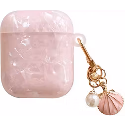 Apple AirPods (1 & 2. gen.) Plastik Cover m. Vedhæng - Marmor Design - Lyserød